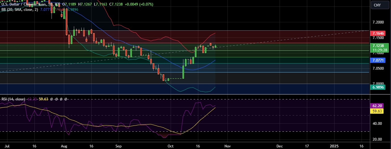 • USD/ CNY steadied on Friday amid a rebound in the U.S. dollar and rising concerns about a trade war if Donald Trump wins the upcoming election.