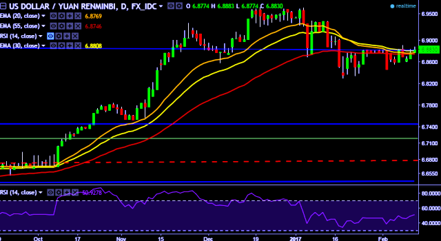- A sustained close above 6.8774 marks will test key resistances at 6.8916, 6.9080, 6.9162, 6.9336, 6.9496, 6.9615, 6.9778 and 6.9883 marks respectively.