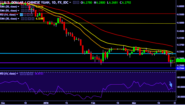We prefer to take short position on USD/CNY around 6.28, stop loss 6.3010 and target of 6.2500.