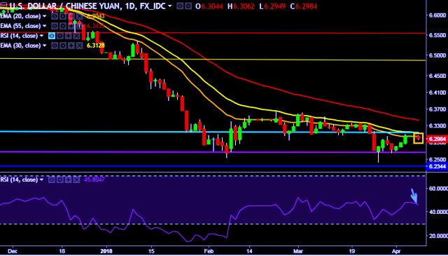 We prefer to take long position on USD/CNY around 6.3020, stop loss 6.2728 and target of 6.3320.