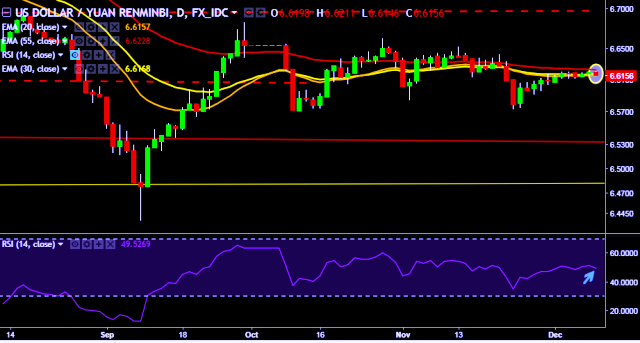 We prefer to take long position on USD/CNY only above 6.6210, stop loss 6.6055 and target of 6.6326/6.6405.