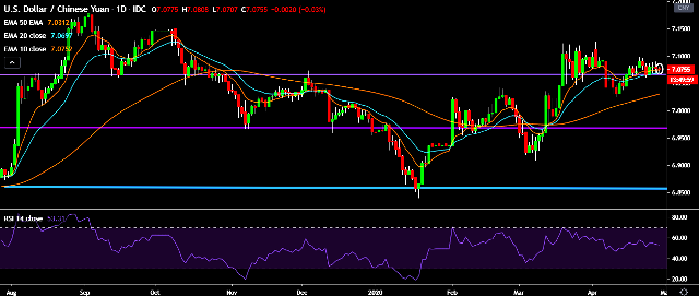 - It made intraday high at 7.0808 and low at 7.0707 levels.