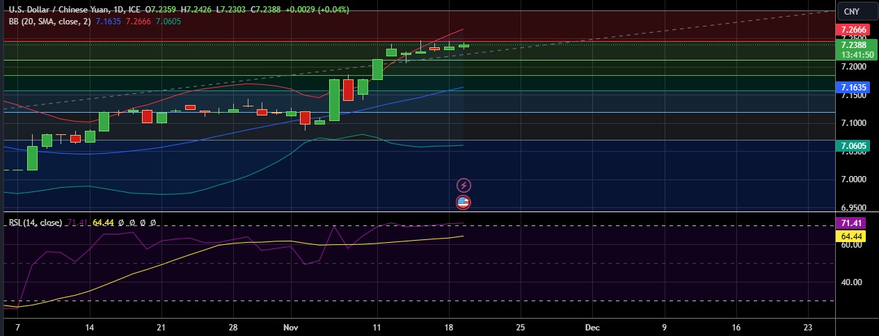 • USD/CNY steadied around 7.240 level on Tuesday as concerns over potential US tariffs continue to cloud Chinese currency.