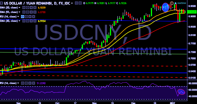 We prefer to take long position in USD/CNY around 6.9190, stop loss 6.8983 and target of 6.9496.