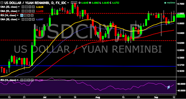 We prefer to take long position in USD/CNY around 6.6725, stop loss 6.6560 and target 6.6870/6.7017.