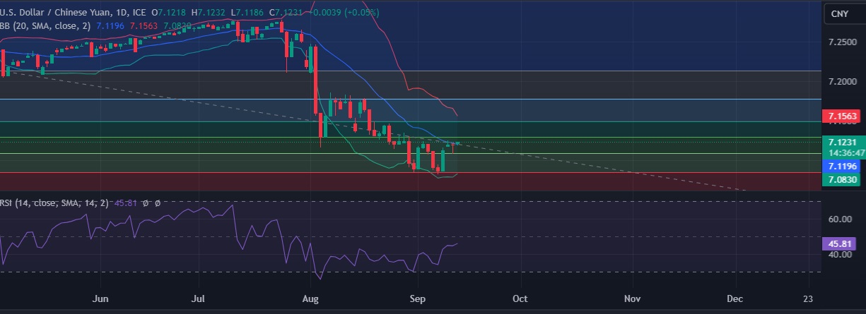 • Support is seen at 7.107(38.2%fib) and break below could take the pair towards 7.084(23.6%fib).