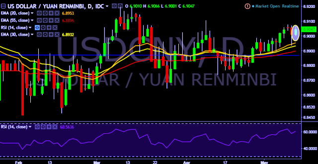 We prefer to take long position in USD/CNY only above 6.9080, stop loss at 6.8937 and target of 6.9150.