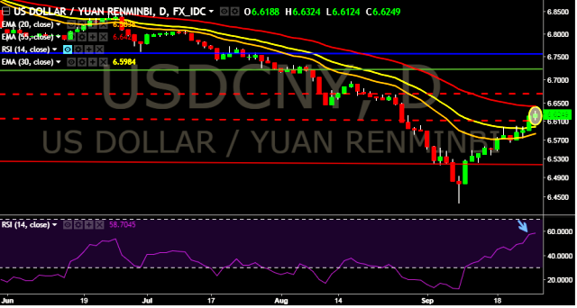 We prefer to take long position in USD/CNY around 6.6170, stop loss at 6.5998 and target of 6.6673.