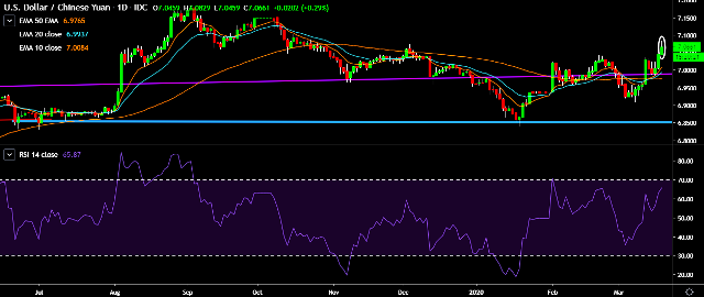 - It made intraday high at 7.0829 and low at 7.0459 levels.