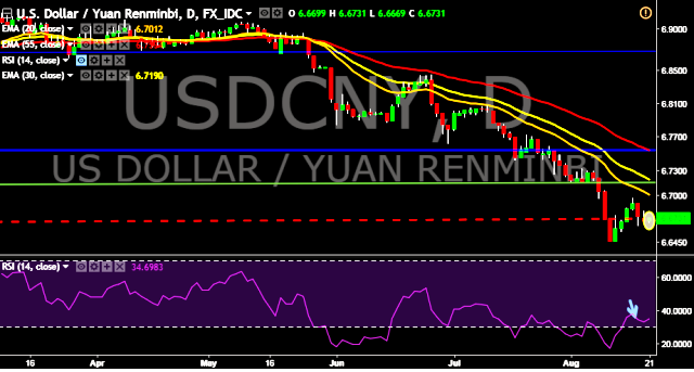 We prefer to take long position in USD/CNY only above 6.6814, stop loss at 6.6650 and target of 6.7055.