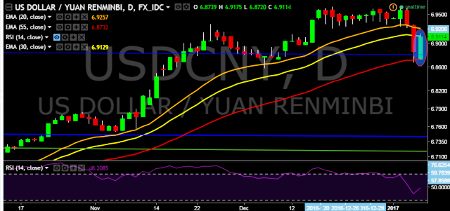 We prefer to take long position in USD/CNY around 6.9050, stop loss 6.8720 and target of 6.9321/6.9496.