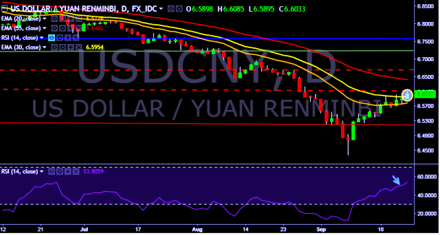We prefer to take long position in USD/CNY around 6.5980, stop loss at 6.5729 and target of 6.6227.