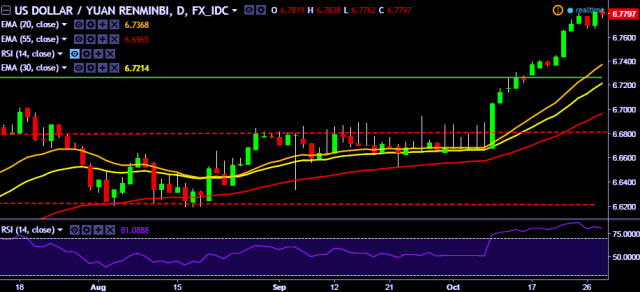 - It made intraday high at 6.7838 and low at 6.7762 levels.