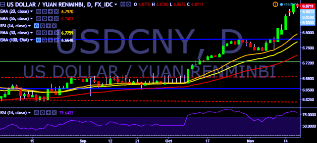 - It made intraday high at 6.8780 and low at 6.8672 levels.