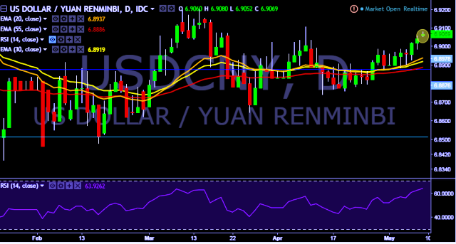 We prefer to take long position in USD/CNY around 6.9060, stop loss at 6.8985 and target of 6.9150.