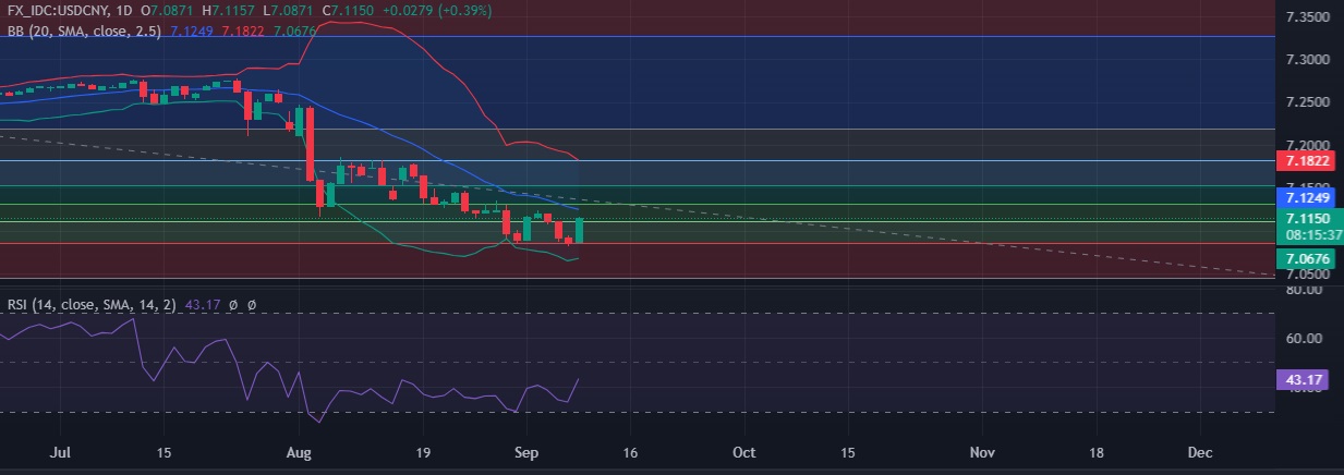 • Support is seen at 7.112(38.2%fib) and break below could take the pair towards 7.087 (23.6%fib).
