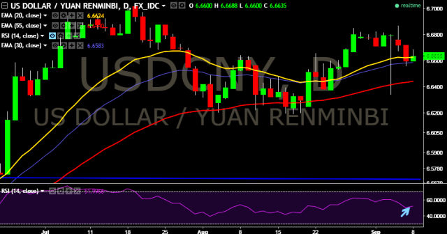 We prefer to take long position in USD/CNY only above 6.67, stop loss 6.6560 and target 6.6870/6.7017.