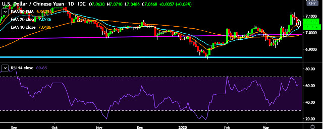 - Alternatively, a daily close below 7.0459 will drag the parity down towards key supports at 7.0285, 7.01, 7.0076, 6.9857 and 6.9510 marks respectively.