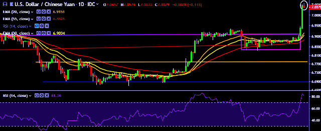 - It made intraday high at 7.0574 and low at 7.0333 levels.