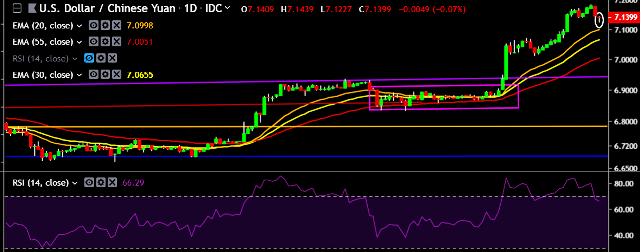 - It made intraday high at 7.1439 and low at 7.1227 levels.
