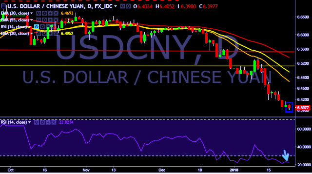 We prefer to take short position on USD/CNY around 6.4050, stop loss 6.4180 and target of 6.3672.