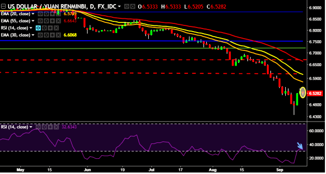 We prefer to take short position in USD/CNY around 6.5300, stop loss at 6.5477 and target of 6.4910/6.4829.