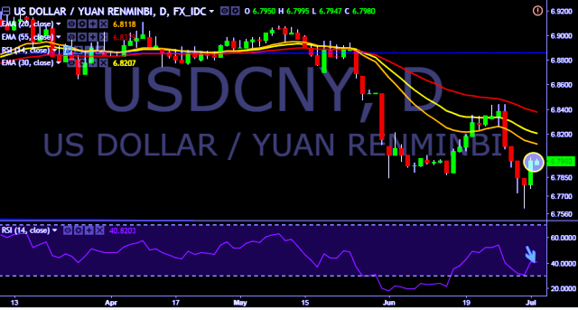 We prefer to take long position in USD/CNY only above 6.8006, stop loss at 6.7757 and target of 6.8352.