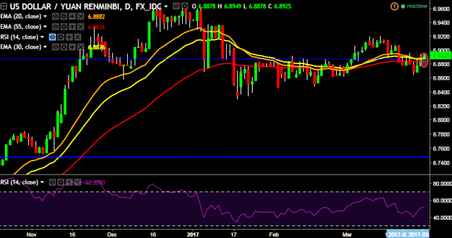 We prefer to take long position in USD/CNY around 6.8900, stop loss 6.8778 and target of 6.9073.