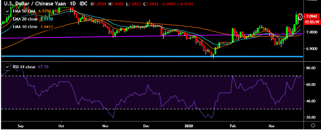 - USD/CNY is currently trading around 7.0962 marks.