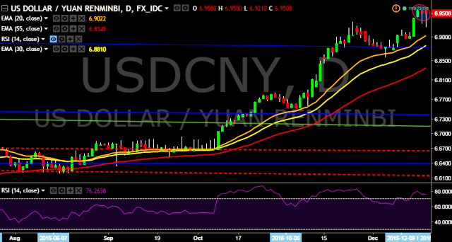 We prefer to go long on USD/CNY only above 6.9570, stop loss at 6.9189 and target of 6.9637/6.9778.