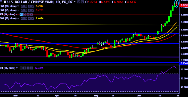 We prefer to take long position on USD/CNY around 6.5950, stop loss 6.5750 and target of 6.6418.
