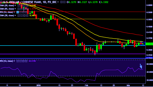 - A sustained close above 6.3284 marks will test key resistances at 6.3515, 6.3625, 6.3855 and 6.4017 marks respectively.