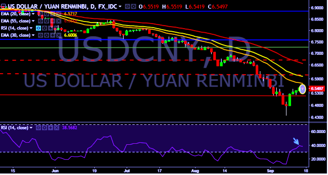 We prefer to take long position in USD/CNY only above 6.5535, stop loss at 6.5399 and target of 6.5658.