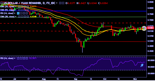 We prefer to take short position in USD/CNY only below 6.6210, stop loss at 6.6405 and target of 6.6018.