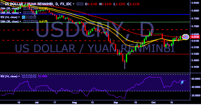 We prefer to take long position in USD/CNY only above 6.6349, stop loss at 6.6255 and target of 6.6550.