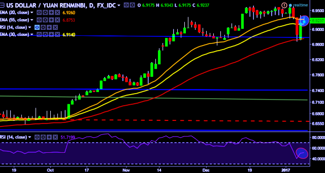 We prefer to take long position in USD/CNY around 6.92, stop loss 6.9175 and target of 6.9496.
