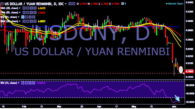 We prefer to take short position in USD/CNY around 6.7950, stop loss 6.8298 and target of 6.7520.