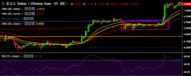 - USD/CNY is currently trading around 7.0555 marks.