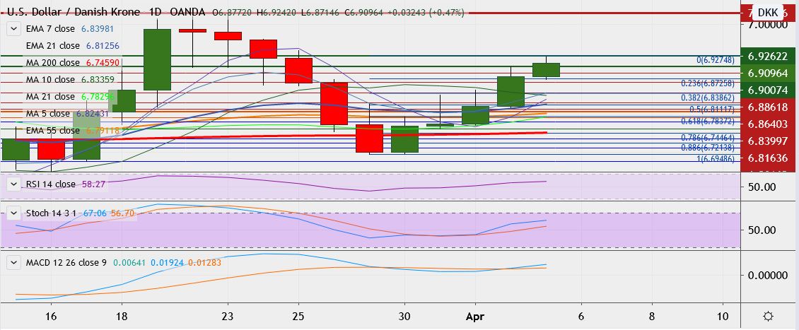 FxWirePro: USD/DKK at 1-week peak, likely to continue bullish momentum