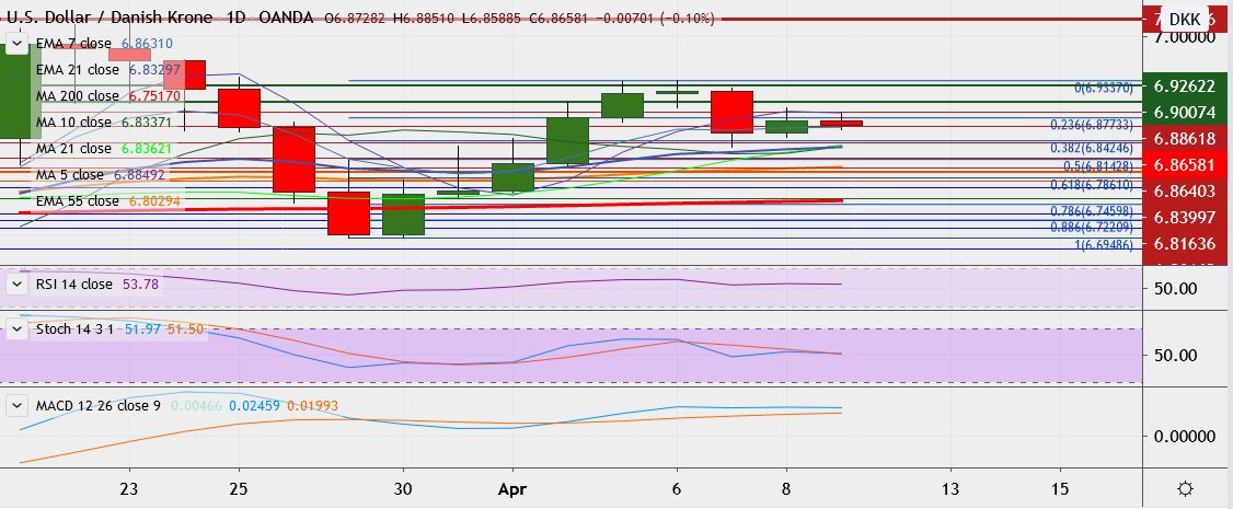 - USD/DKK is trading 0.1 percent down at 6.8651, having hit high of 6.9337 on Monday, its highest since Mar. 25.