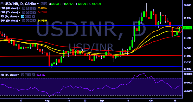 We prefer to take long position in USD/INR 65.07, stop loss at 64.90 and target of 65.35.