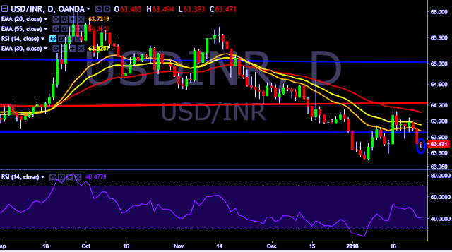 - USD/INR is currently trading around 63.49 marks.