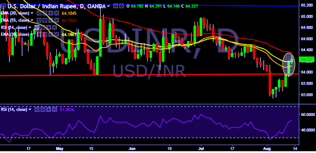 - It made intraday high at 64.29 and low at 64.14 marks.
