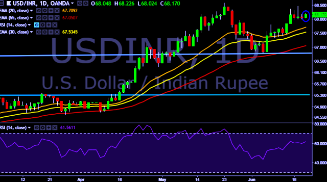 - It made intraday high at 68.22 and low at 68.02 marks.