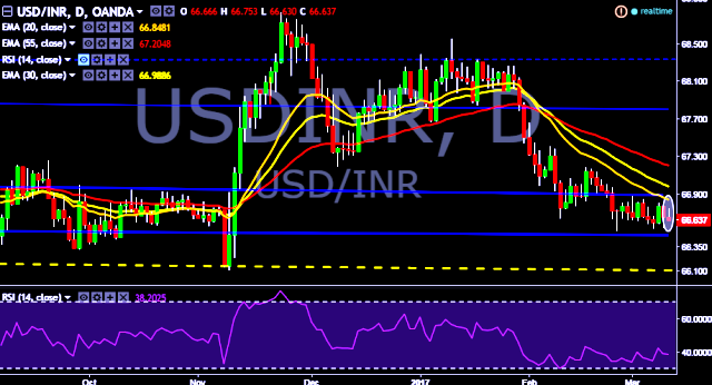 - It made intraday high at 66.75 and low at 66.63 marks.