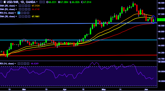- USD/INR is currently trading around 67.00 marks.