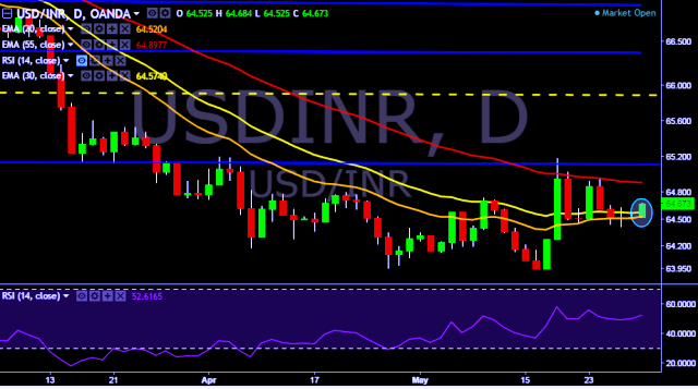 - It made intraday high at 64.68 and low at 64.52 marks.