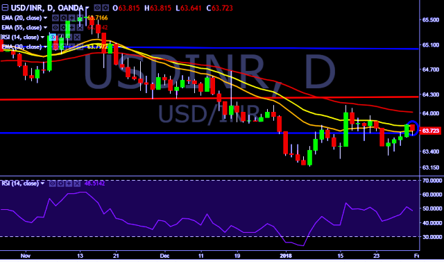- Key resistances are seen at 63.82, 63.96, 64.05 and 64.12 marks respectively.
