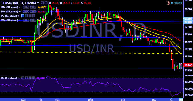 - Key resistances are seen at 65.48, 65.62, 65.80, 66.00, 66.32, 66.48, 66.57, 66.80, 67.01, 67.17, 67.31 and 67.45 marks respectively.