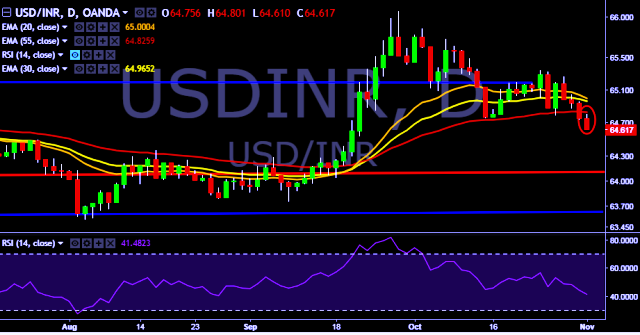 We prefer to take short position in USD/INR around 64.65, stop loss at 64.92 and target of 64.29.